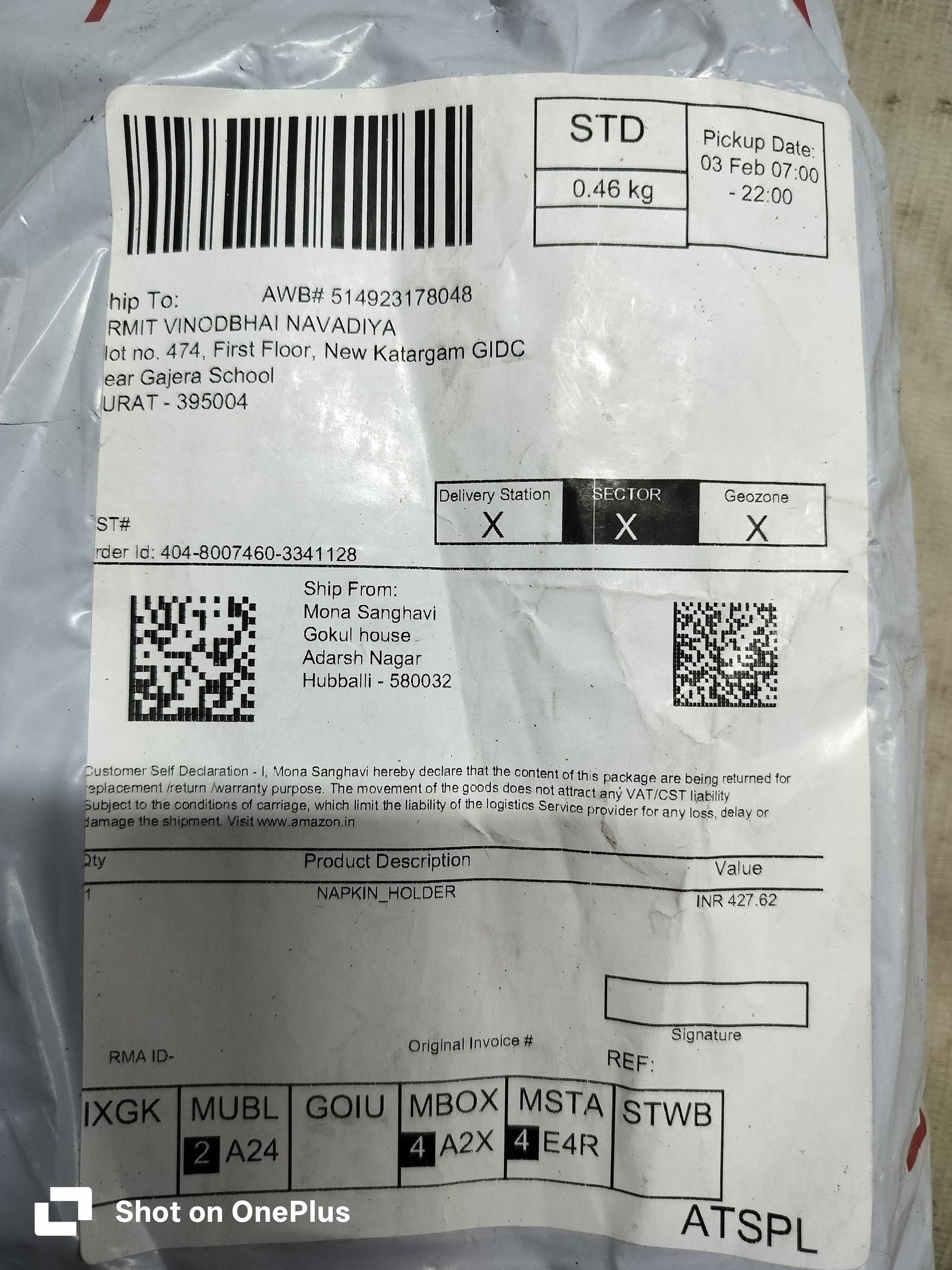 Order ID: 404-8007460-3341120