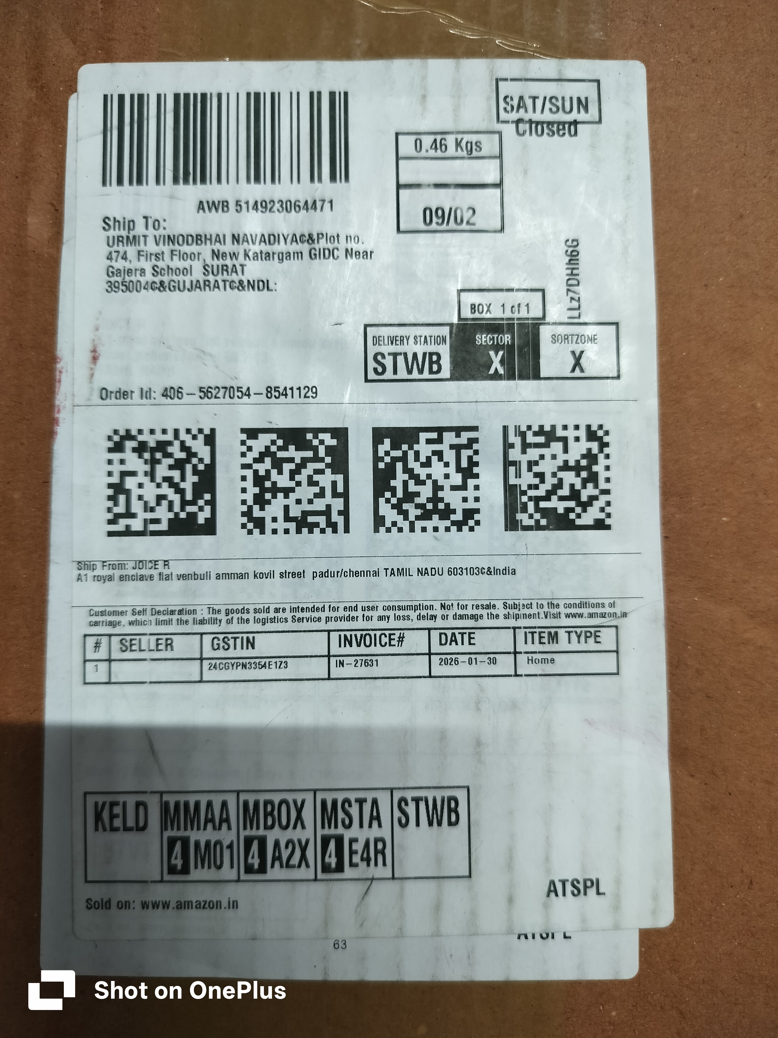 Order ID: 406-5627054-8541129