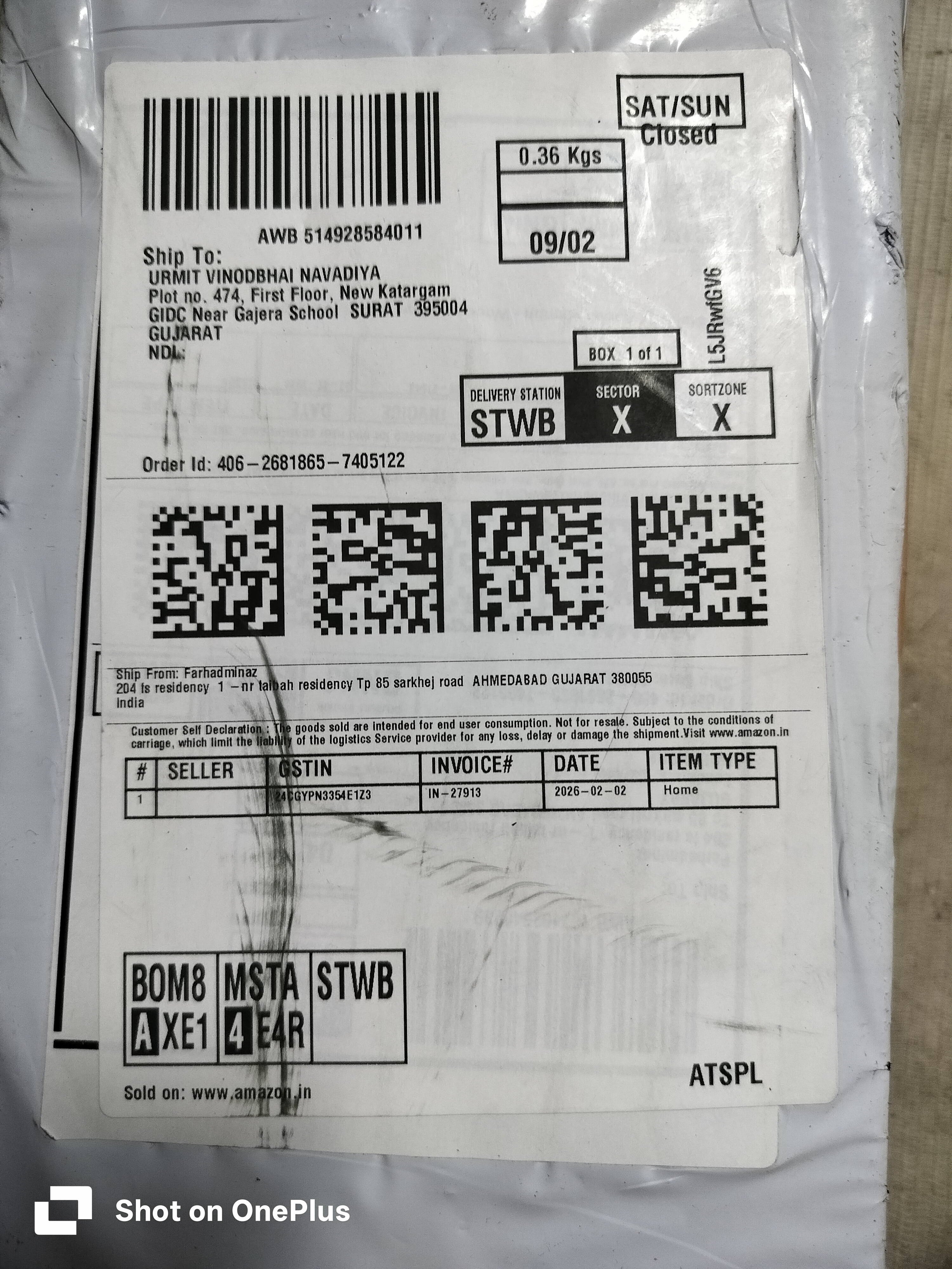 Order ID: 406-2681865-7405122